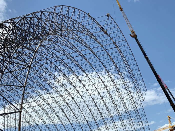 (2)网架加工前应对现场尺寸进行复测,确认无误后方可进行加工、安装;网架制作、运输、安装应遵守《空间网格结构技术规程》JGJ7-2010、《钢网架枣阳螺栓球节点》JG/T 10-2009、《钢网架枣阳螺栓球节点用高强度螺栓》 GB/T 16939-2016、《枣阳钢结构枣阳工程枣阳施工规范》 GB50755-2012、《枣阳钢结构枣阳工程枣阳施工质量验收标准》 GB50205-2020。